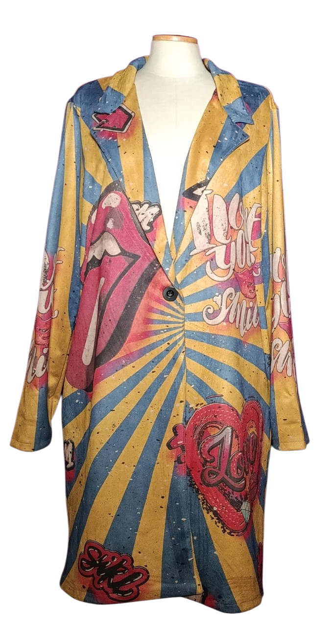 Abrigo corte levita de antelina estampada con cierre de un solo botón y bolsillos laterales. Prenda de entretiempo para realzar cualquier look.