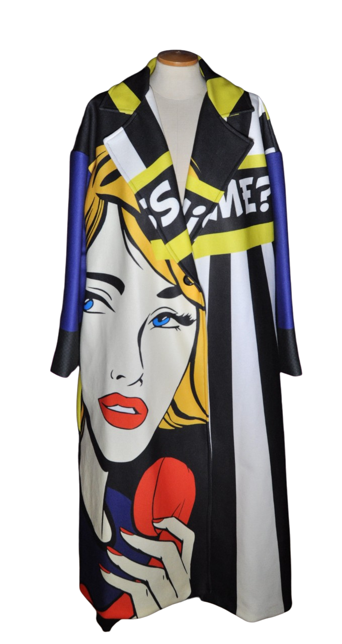 Abrigo oversize de paño con un atrevido y original estampado. ¡No dejará indiferente a nadie!