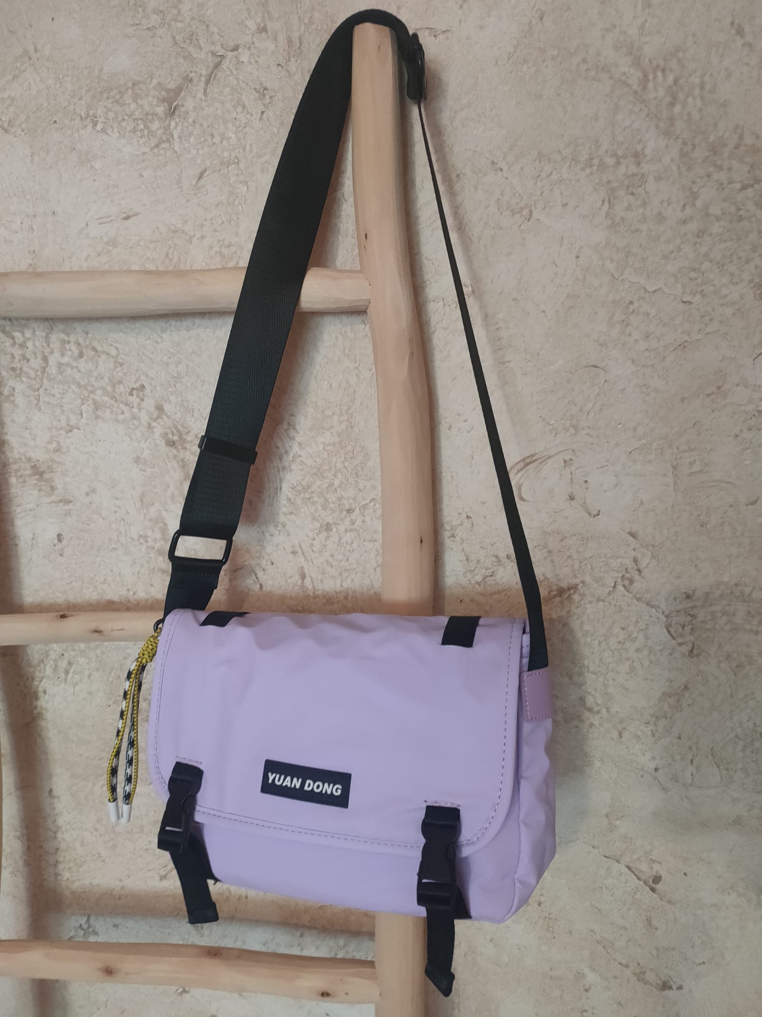 Bolso/bandolera impermeable en color lila con cierre de cremallera. Contiene dos apartados en el interior, además de un bolsillo trasero.