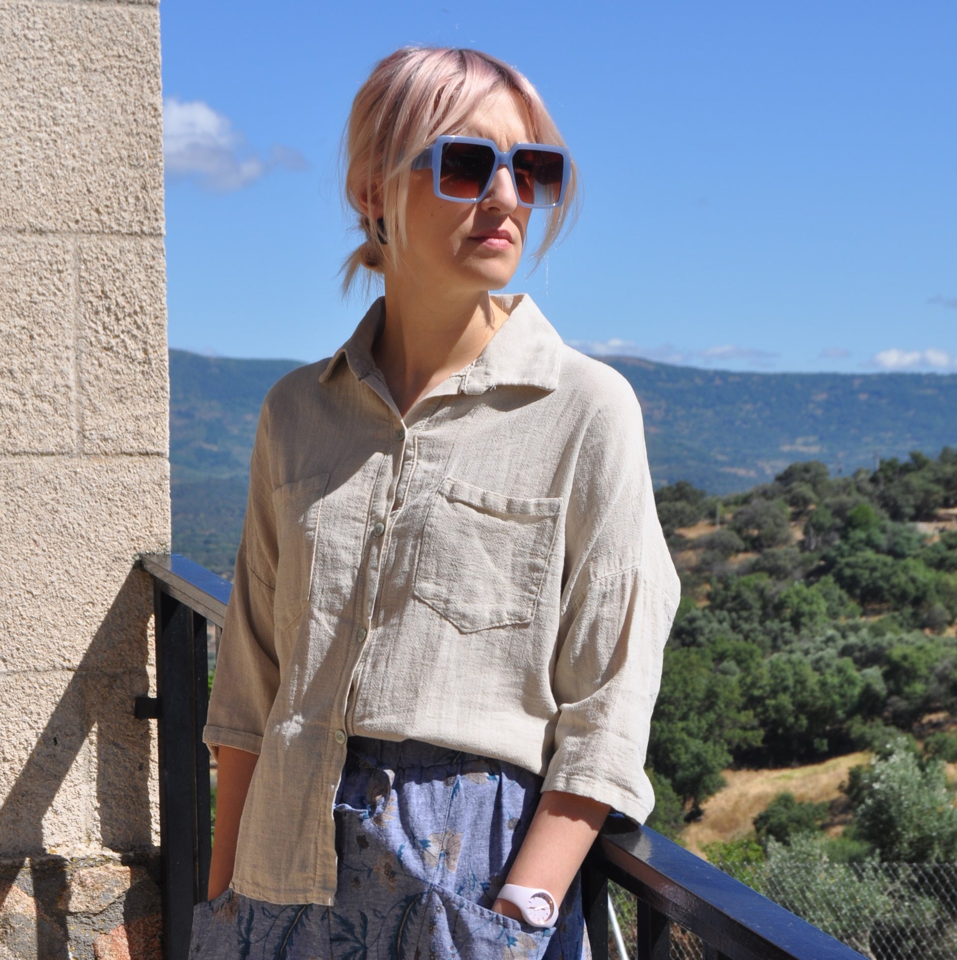 Camisa mezcla de lino y algodón con bolsillos en el pecho.