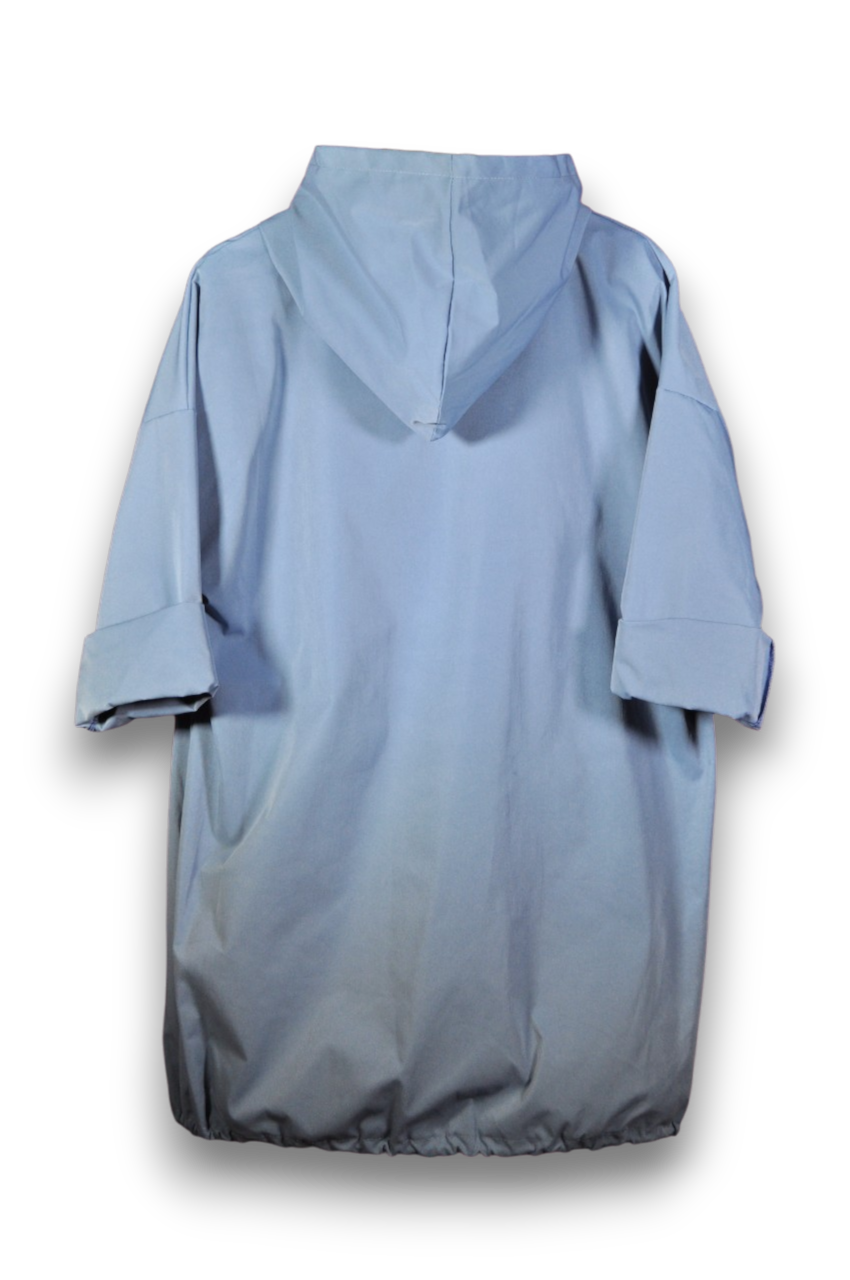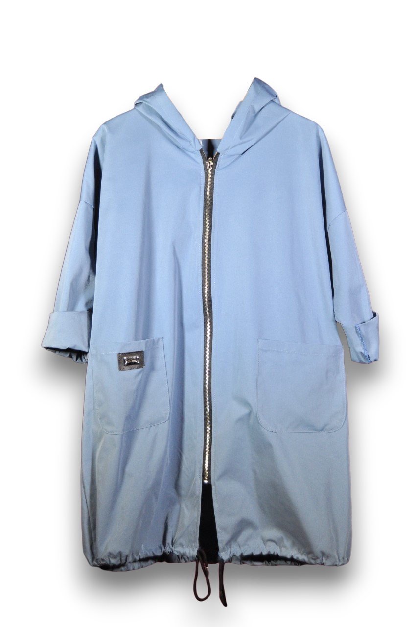Chubasquero con capucha y bolsillos en color azul cielo.