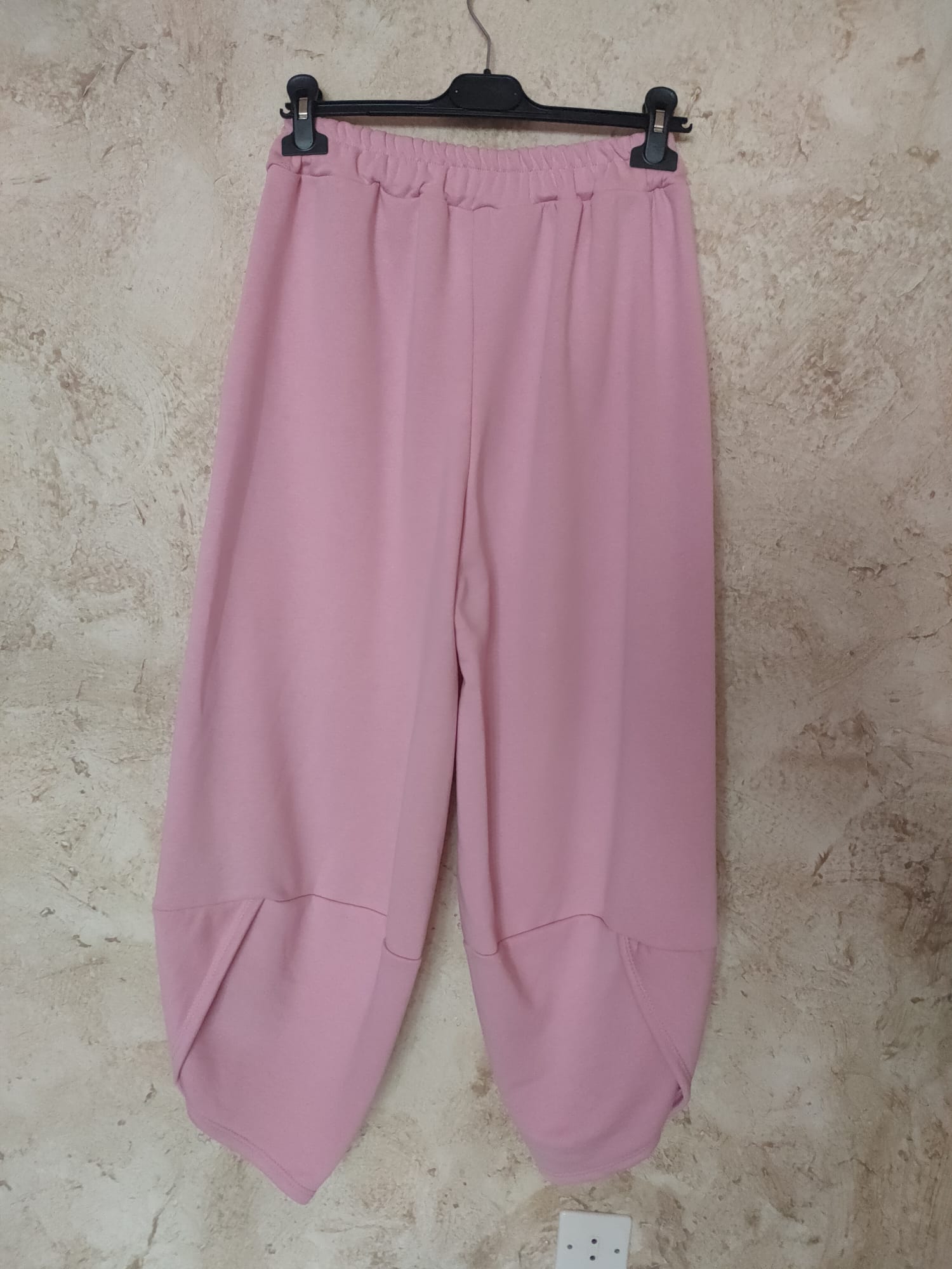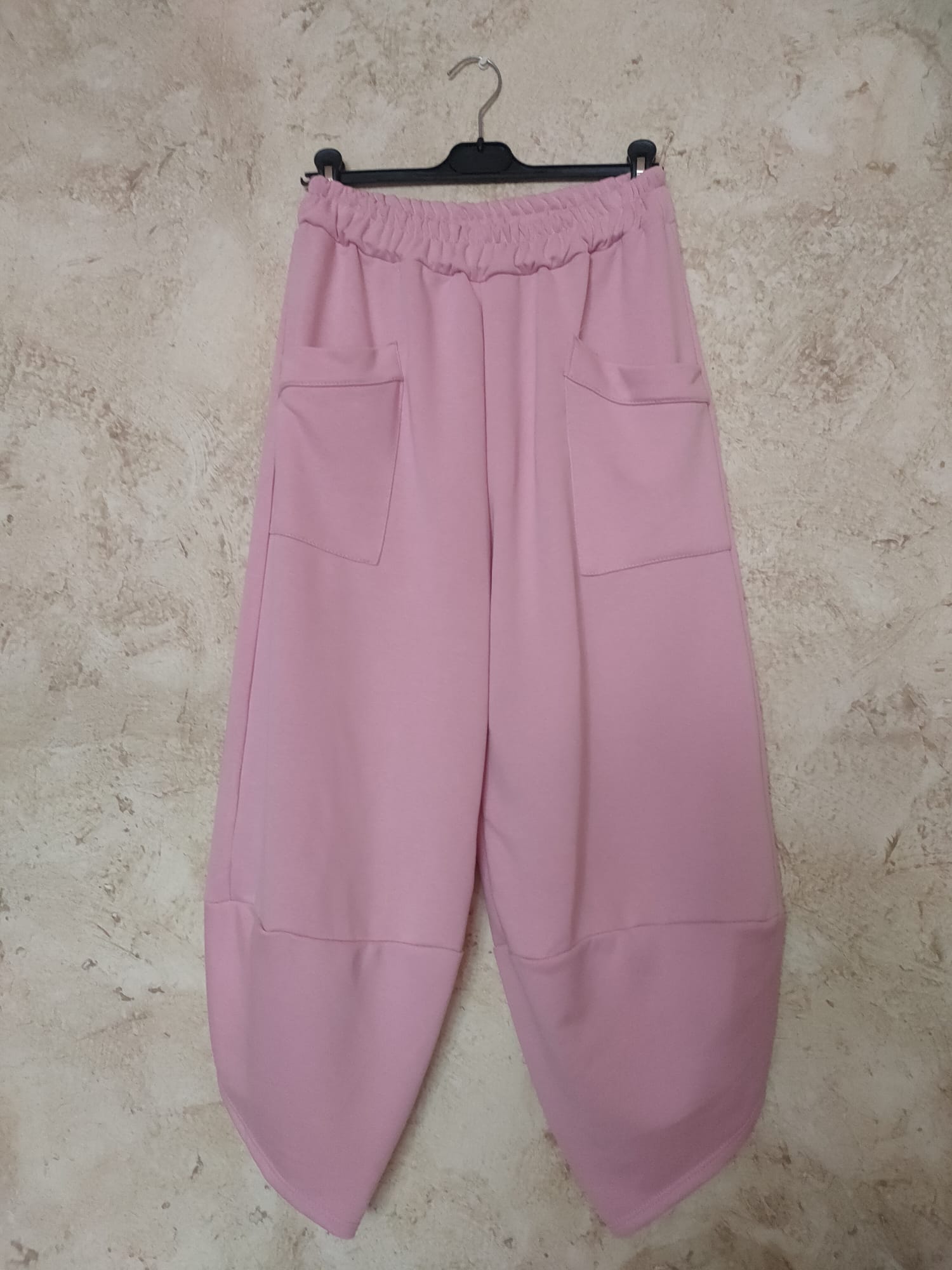 Pantalón ancho y bolsillos delanteros en color rosa palo. Cintura elástica y bonito detalle en el bajo. Talla única. Tejido: 65% Algodón; 35 % Poliéster.