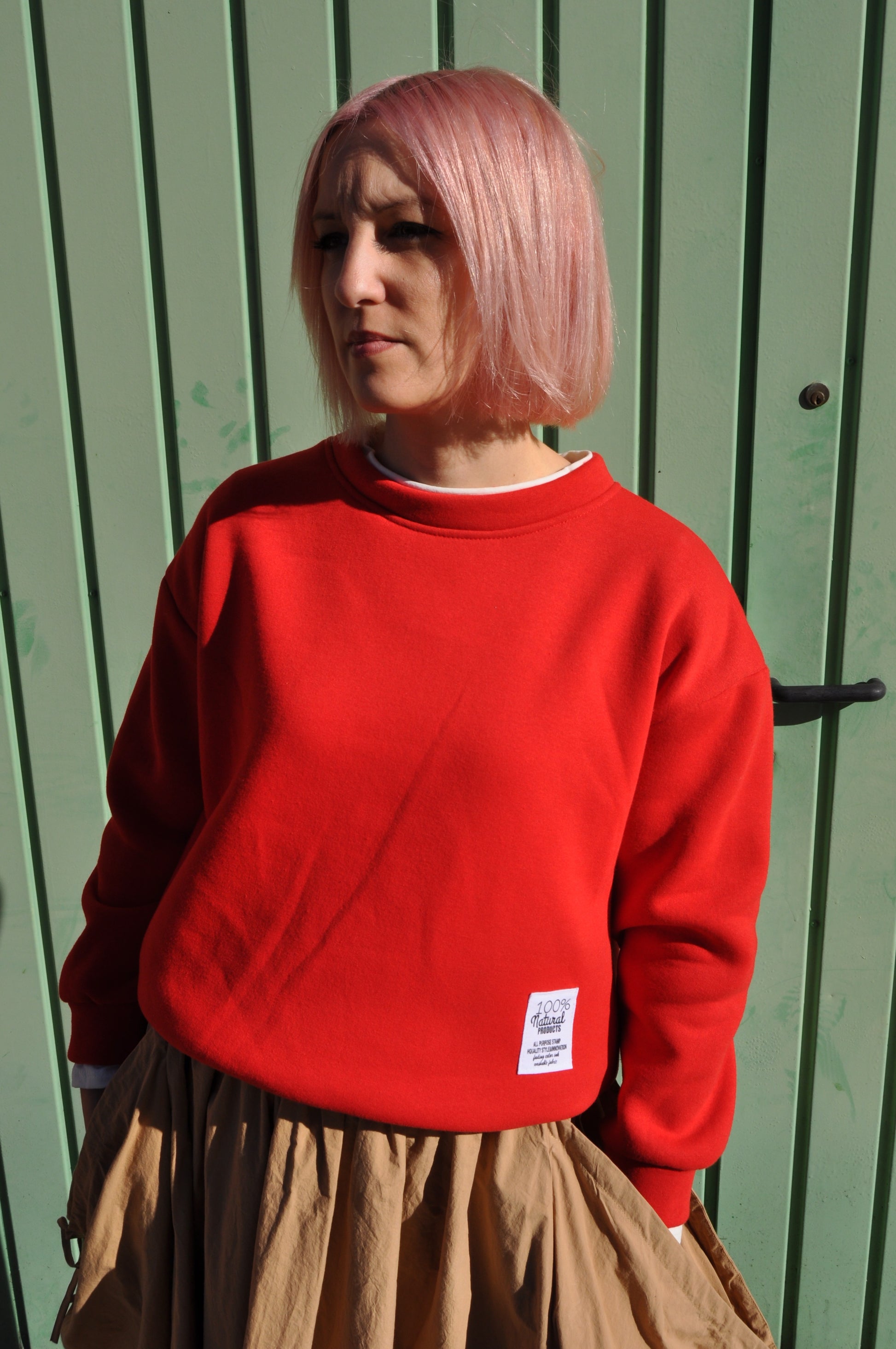 Sudadera roja con tejido 100% natural efecto doble capa.