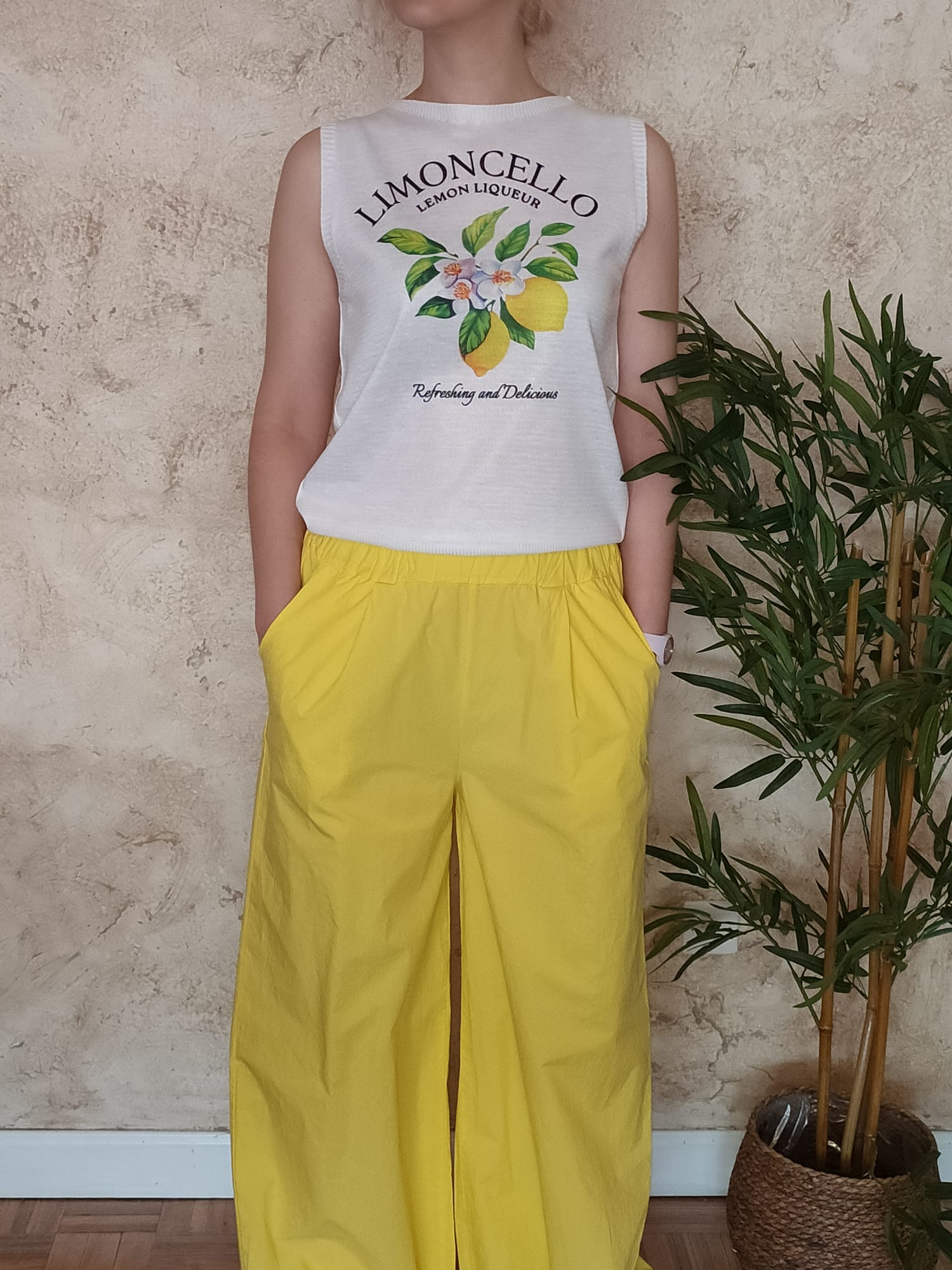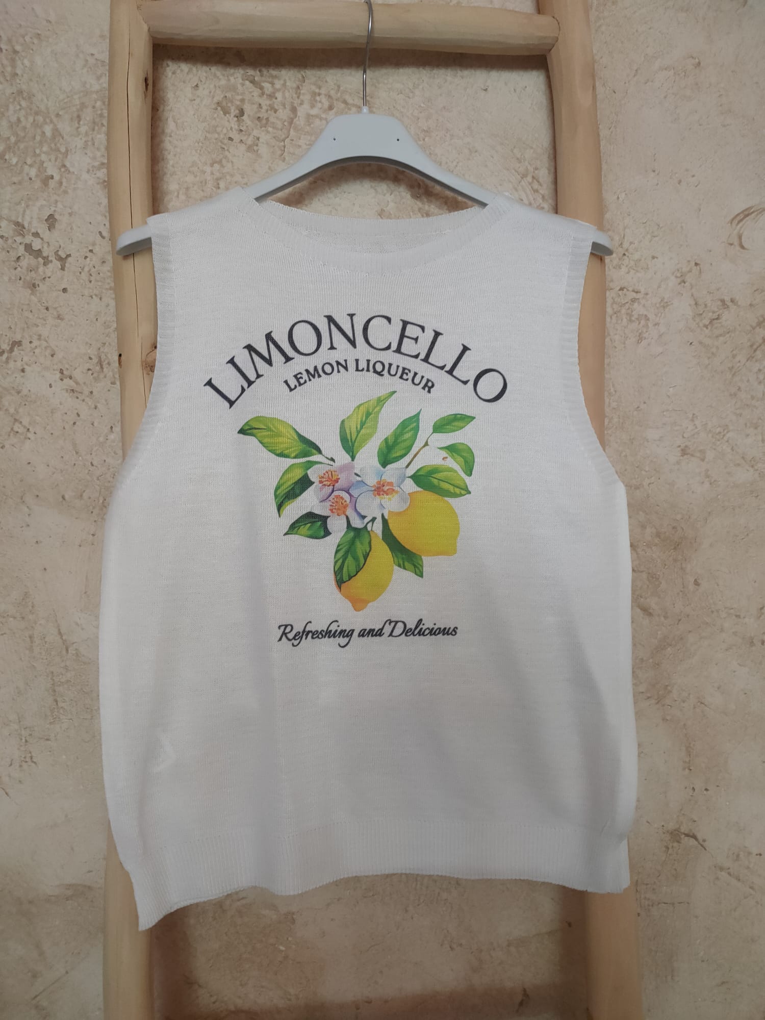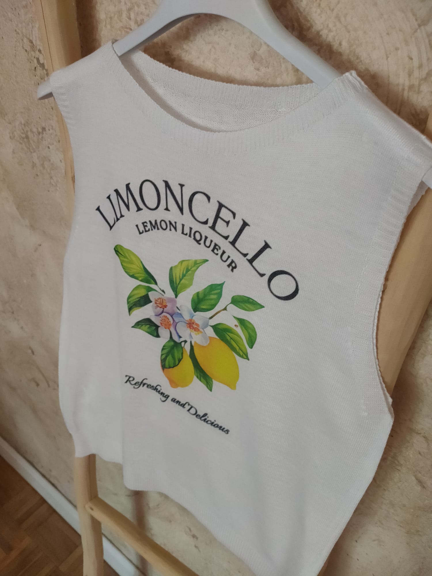 Top sin mangas de hilo con estampado de cítricos. Talla única.